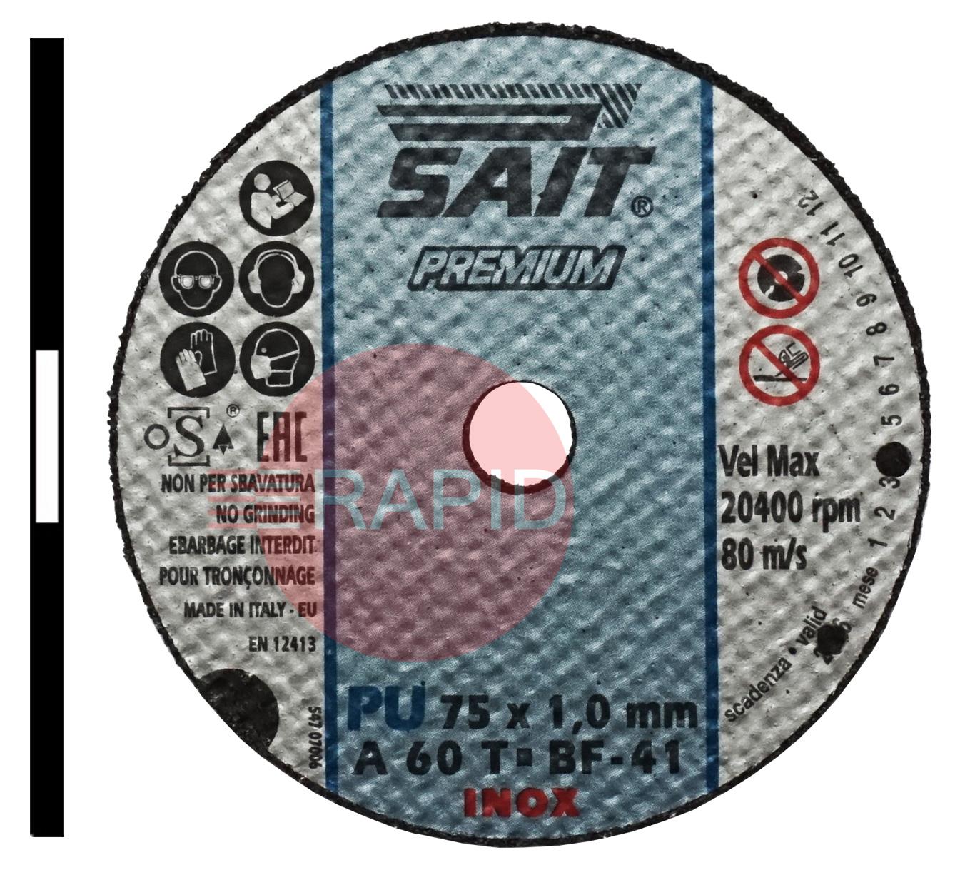 SAIT Premium-PU 75mm (3") Slitting Cutting Disc 1mm Thick - Grade PU A 60 T