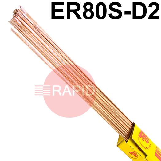 A copper-coated alloy steel rod containing 0.5% molybdenum. Suitable for use on low-temperature pressure vessel and pipe work applications. To be used under the shield of Ar+CO2 or CO2.
