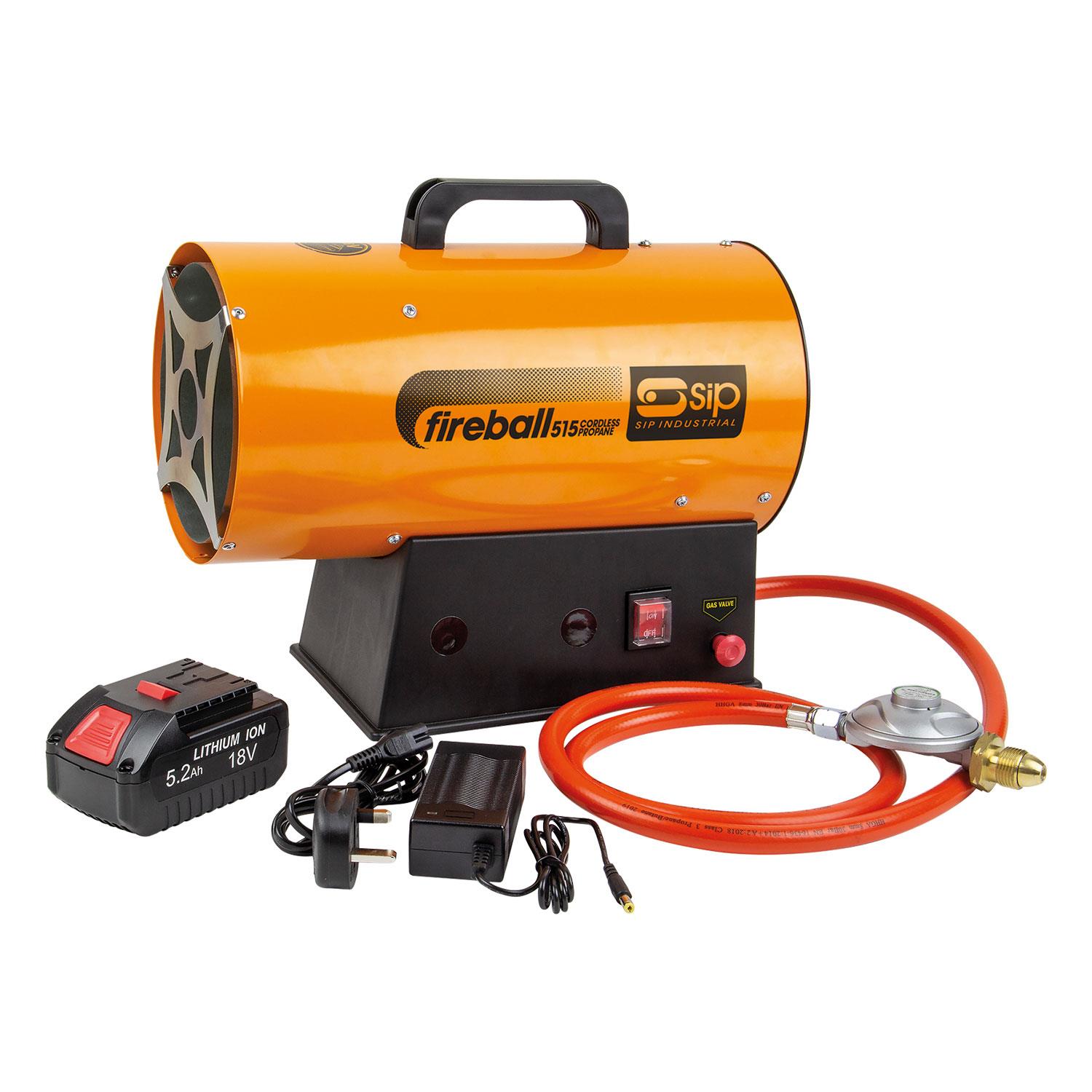 The SIP Fireball Cordless Propane Heater is a heavy-duty 18v battery-powered model designed specifically for mobility and efficiency, without compromising the powerful heating output.