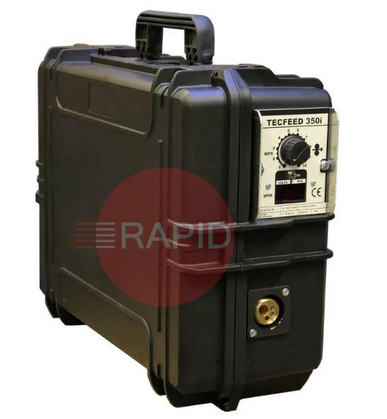 The TECFEED 350i compact is robustly constructed in a reinforced moulded case to give a fully enclosed wire feed unit which is well sealed against the elements. Due to its rugged construction, this is ideal for all site welding in harsh environments & also is very portable. This wire feed unit is designed to run off virtually any constant current or constant voltage power source, including MMA, TIG, MIG and engine driven type DC power sources. The wire feed unit requires no additional supplies, only welding cable connections, and can run positive or negative polarity, giving very good performances with solid or flux cored wires.