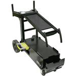 Designed for Fabricator 211i and 252i, with two gas cylinders attached. Includes storage draw at the front of the cart, and one toolbox for consumables storage which slots into the side of the cart.