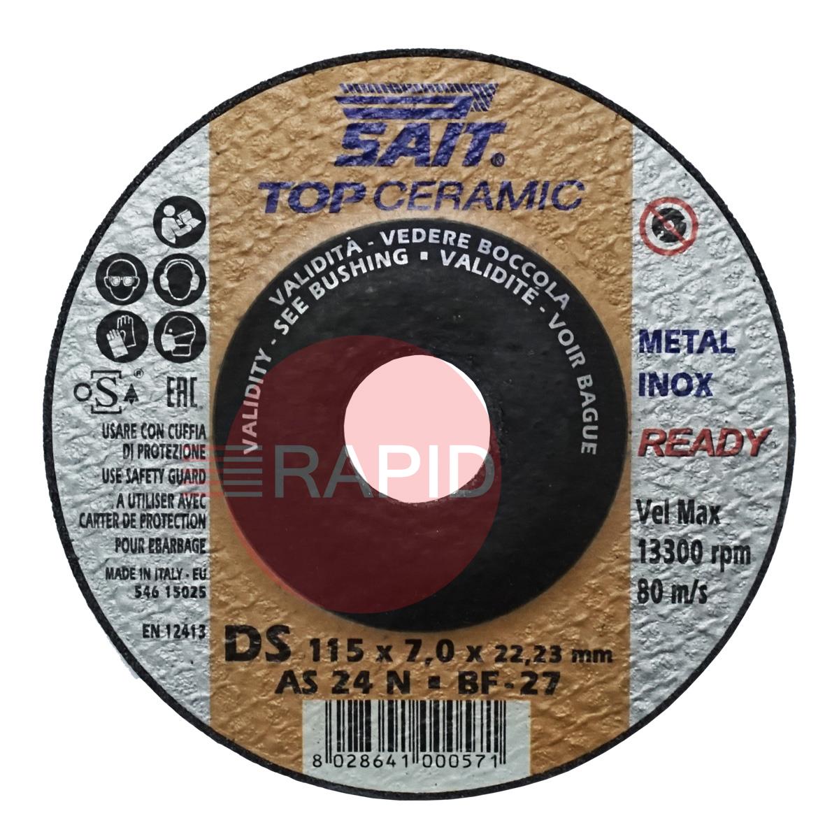 SAIT Top Ceramic-DS 115mm (4.5") Grinding Disc 7mm Thick - DS AS 24 N