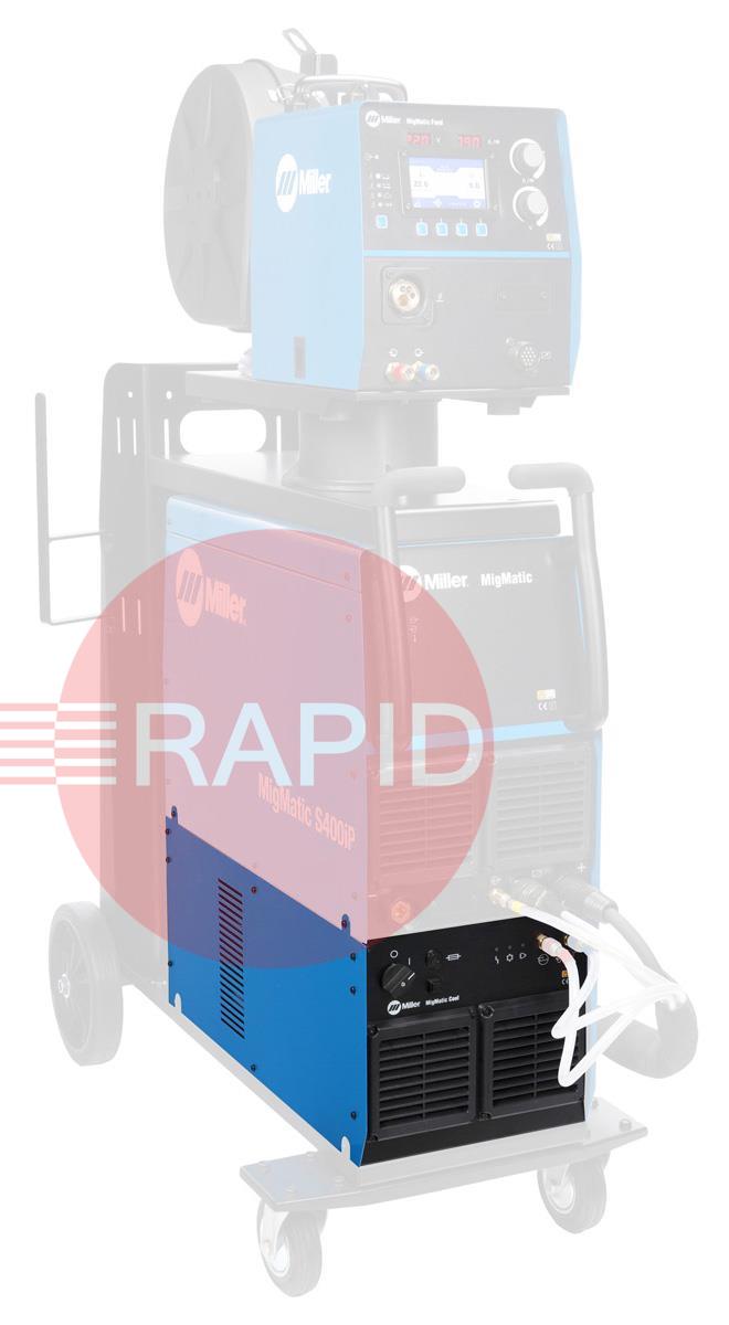 Miller’s own MigMatic Water Coolers are equipped with a low flow alarm and a push button to prime the pump. The tank is able to hold up to 5 litres of coolant and the system generates 1kW or 3412 BTU/h.