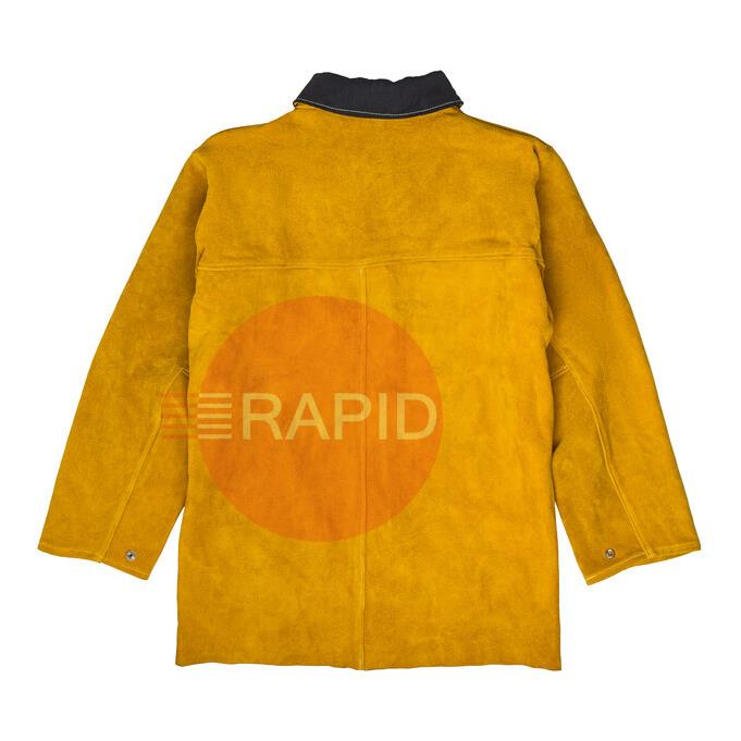 100% split leather jacket provides the ultimate protection against welding spatter and molten materials. Premium features include an internal-only tool pocket and an FR-lined standing collar with hook-and-loop closure. The front uses a fully protected snap enclosure for easy removal. Maximum comfort is achieved with gusseted underarms to minimize sleeve creep during overhead activities, keeping arms fully covered. Two-position snap adjustments at the wrist help customize and secure the fit.