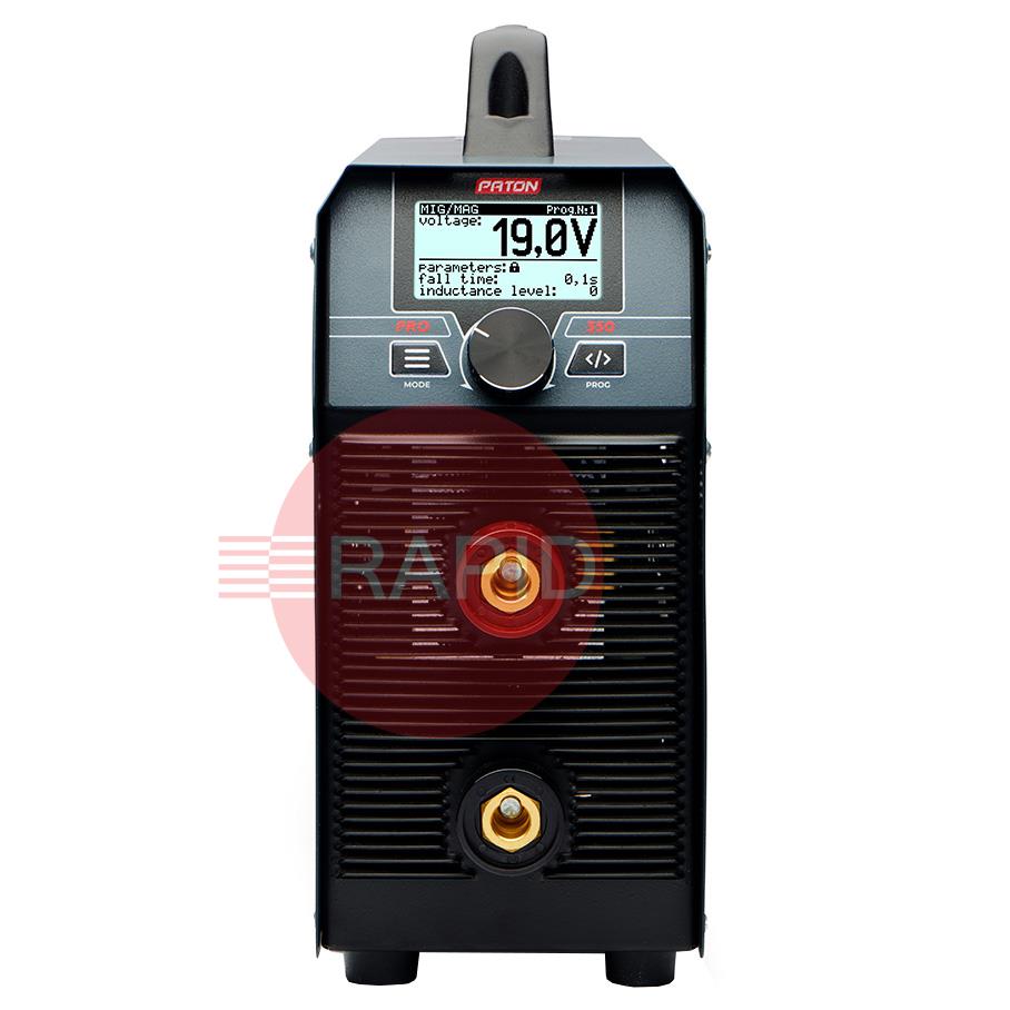 The PATON PRO-350 is a compact 350A arc welder, ideal for professional and industrial welding works. This inverter welder is also capable of TIG Lift and MIG/MAG welding after the purchase of a wire feeder. The PATON PRO-350 welder has a work stabilisation system installed, allowing it to be powered by a generator. The 350A output enables the use of electrodes from 1.6mm to 6.0mm in diameter and semi-automatic welding with solid wire from 0.6mm to 1.4mm in diameter (MIG/MAG welding is possible after purchasing a wire feeder). The PRO-350 features a 70% duty cycle and a 3-year warranty.