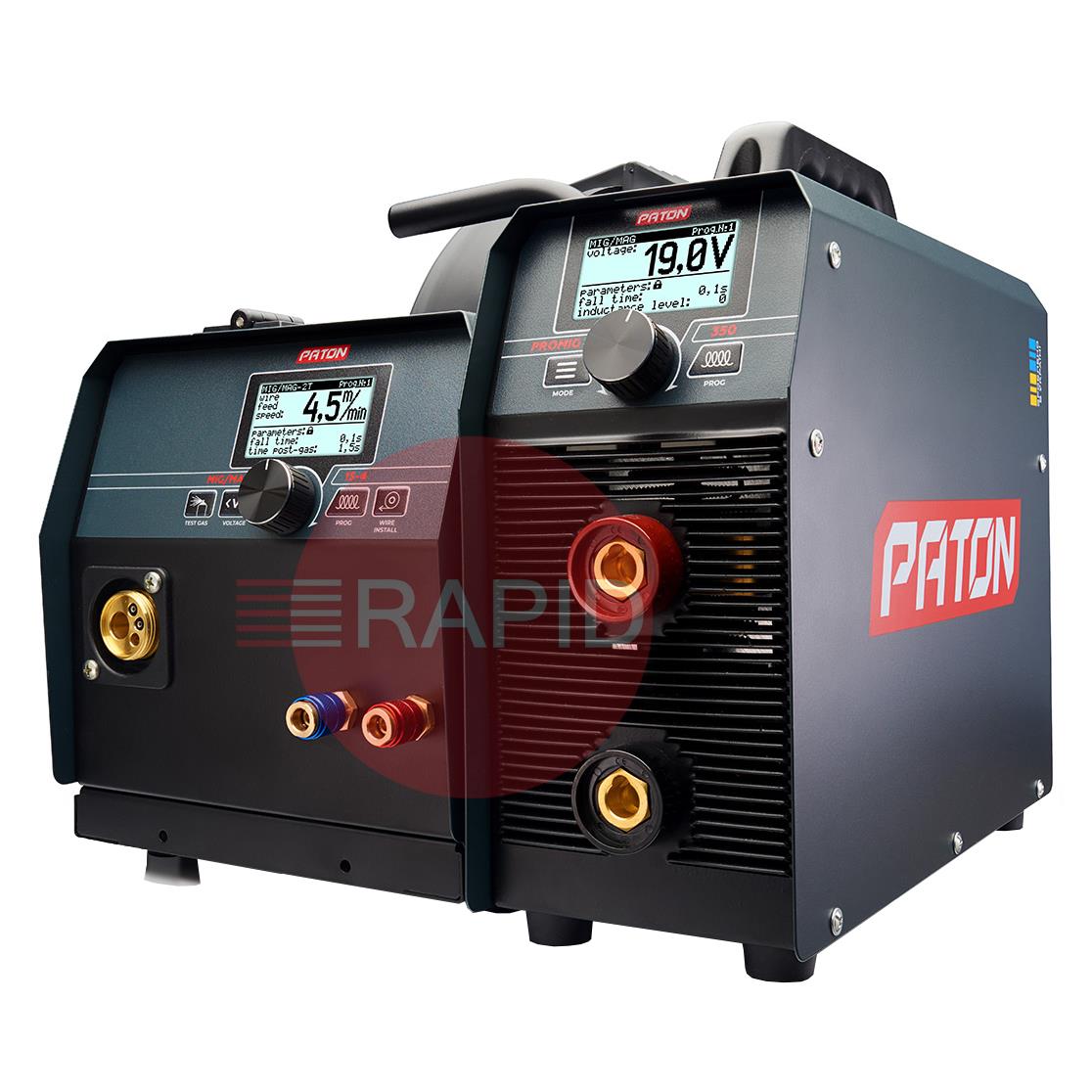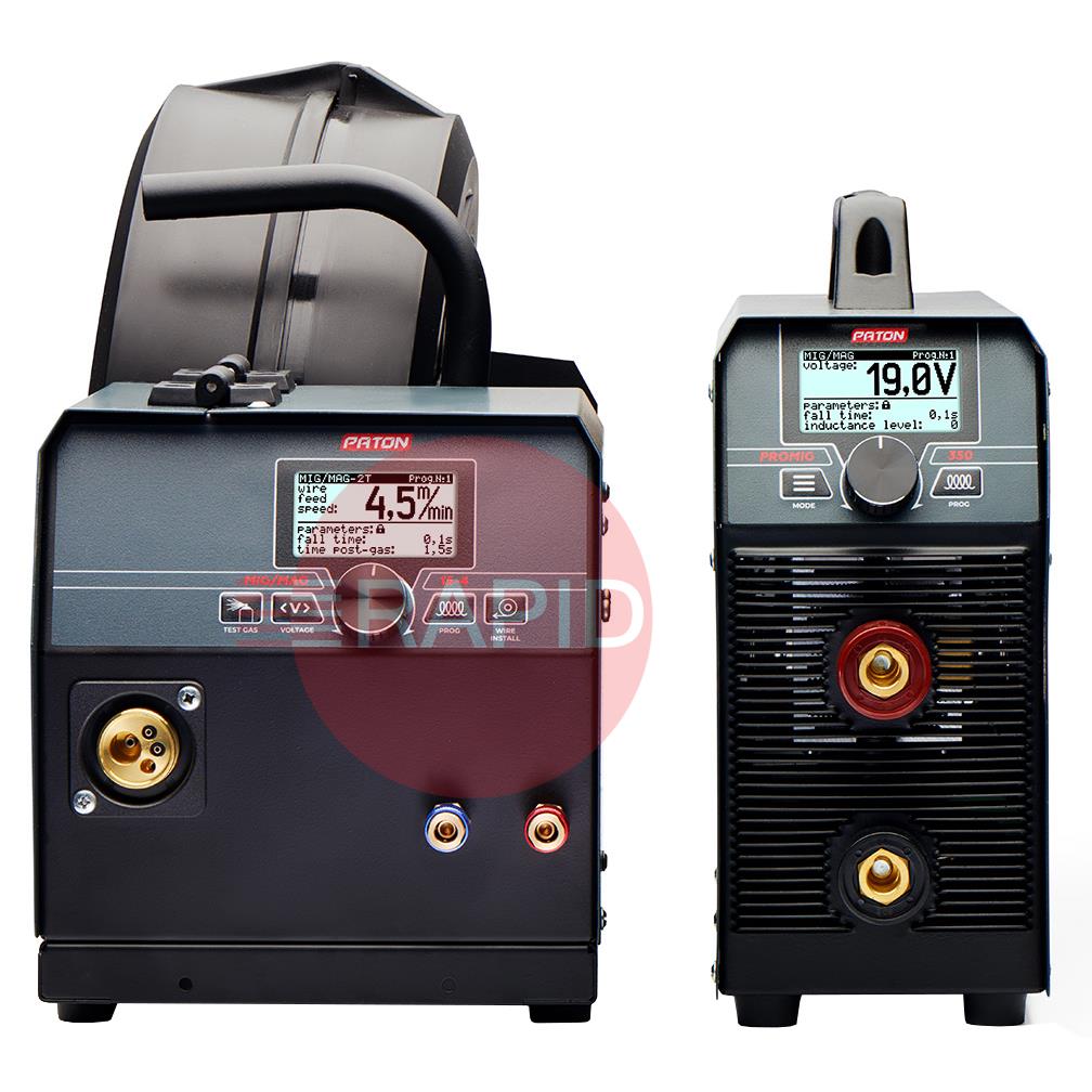 Digital semiautomatic inverter PATON ProMIG-350-15-4 W – is a device for professional use, designed for semi-automatic welding (MIG/MAG), manual arc welding (MMA), TIG DC, in shielding gases and mixtures thereof. In ProMIG-350-15-4 W, the machine features an all-digital control system, ensuring versatility and the ability to fine-tune welding conditions. Expectancy increased load on the rated current to 350A, allows any electrode diameter from 1.6 mm to 6 mm, and conducts semi-solid welding wire with a diameter of 0.6 to 1.4 mm.