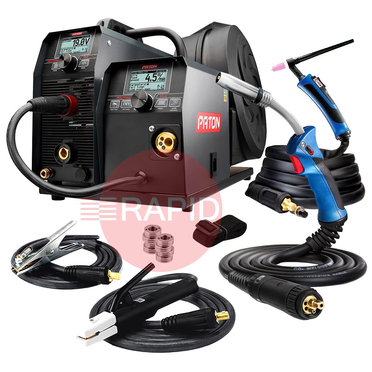 The digital multifunctional welder inverter PATON MultiPRO 350 15-4 is intended for semi-automatic welding with the MIG/MAG method, manual arc welding with the MMA method, and arc welding with the TIG HF method, in a shield of gases and protective mixtures with direct current. These machines operate from a 400V three-phase power supply and have an IP33 protection rating.