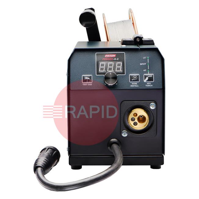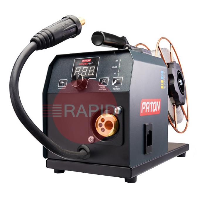 The feeder has its own power source for the motor, a valve for shielding gas supply, and a control system. A characteristic feature of PATON™ feeders is a very powerful, high-quality sealed metal-wire feeding mechanism, as well as an integrated KZ-2 “EURO” type connector that has become a worldwide standard, allowing users to change the torch to their preference in the future. The device has a built-in shielding gas supply valve.