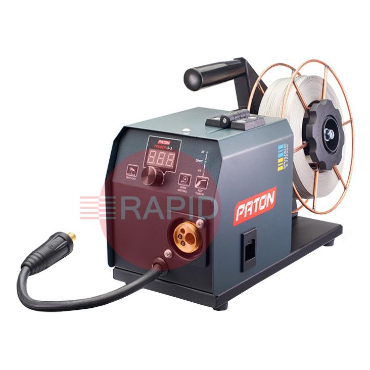 The digital welding wire feeder PATON 5-2 is designed to work with an external welding power source in semi-automatic MIG/MAG welding mode, where the source generates the welding current, and the feeder ensures stable delivery of wire to the welding area.