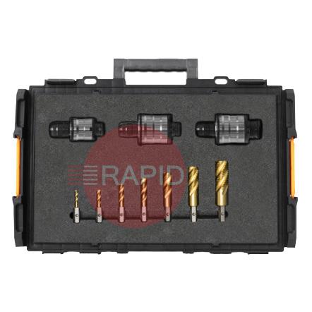 The VersaDrive clutched tapping system is a unique method of effectively threading blind holes without risking damage to your taps. Fit the adapter to a high-torque Impact Wrench, insert a VersaDrive Spiral Flute ImpactaTap and start tapping. When the tap contacts the bottom of the hole, the clutch will engage and prevent the tap from breaking. Then safely back out your tap for a perfectly tapped blind hole.