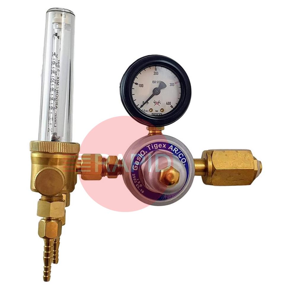 GasiQ TIGEX II Argon/Mix Regulator. 34Lpm. W21.8 x 1/14" Cylinder Connection. G1/4" Outlets.
