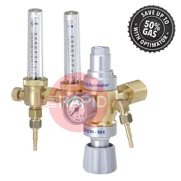GasiQ Optimator II Argon/Mix Gas Saver Regulator. 34Lpm. W24.32 x 1/14" Cylinder Connection. G3/8" Outlets.