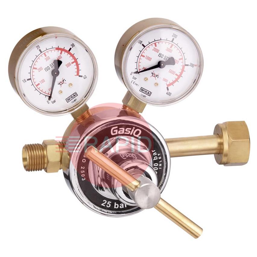 GasiQ High-Capacity H25 Argon/Mix Regulator. 25 Bar. W24.32 x 1/14" Cylinder Connection. G1/2" Outlets.