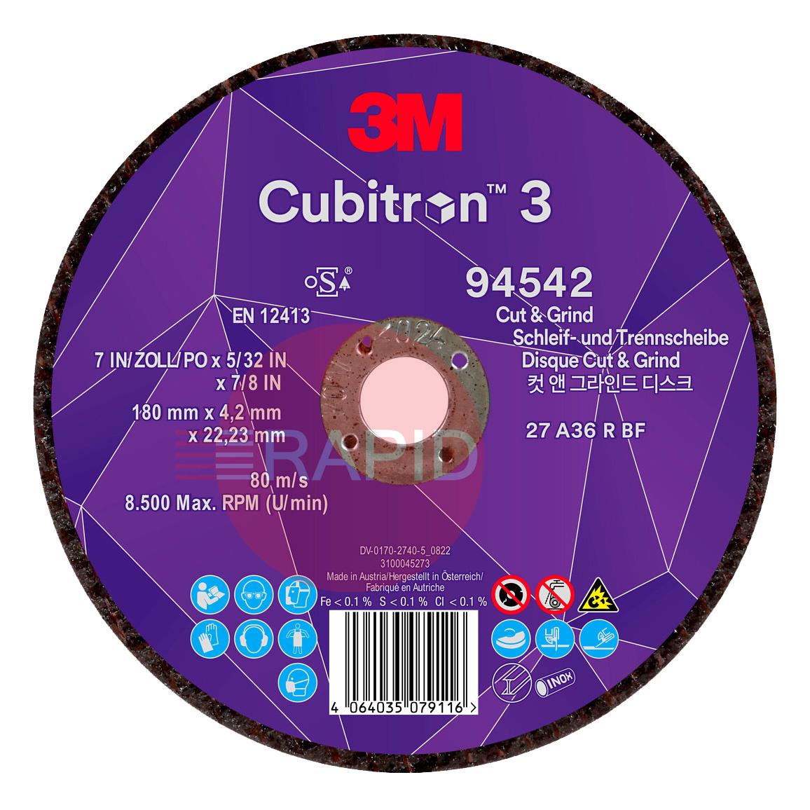 3M Cubitron 3 180mm (7") Cut & Grind Wheel (Box of 20)