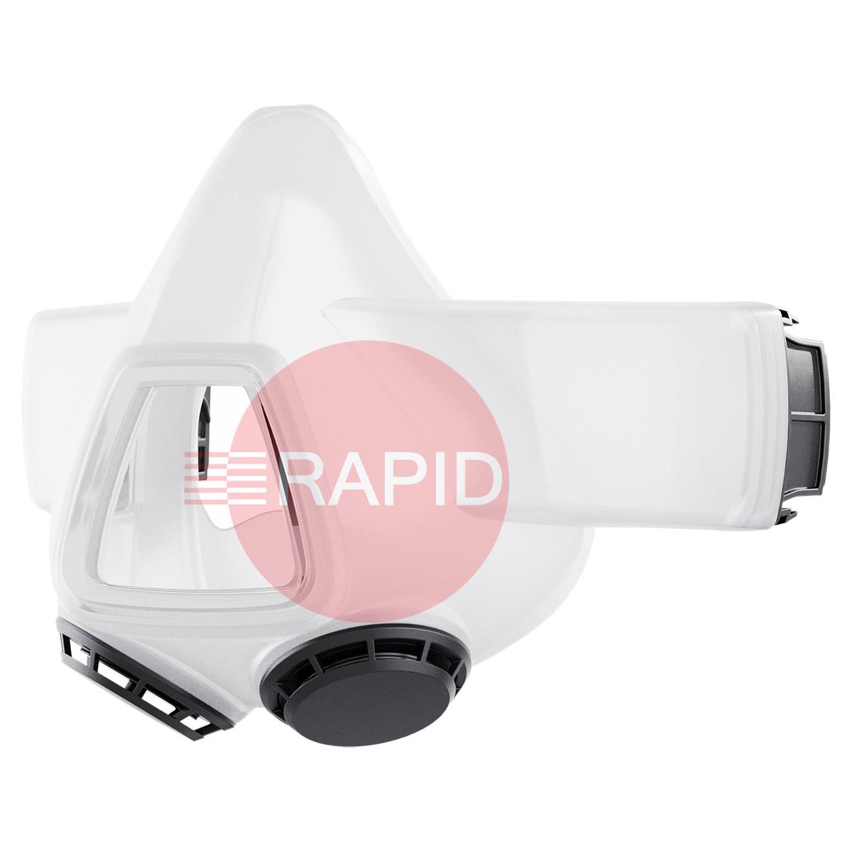 With the Half Mask Tight-fit for the Swiss Air PAPR system, you can increase your respiratory protection to the highest possible level with masks and hoods. The silicone mask is close-fitting and guarantees protection level TM3.