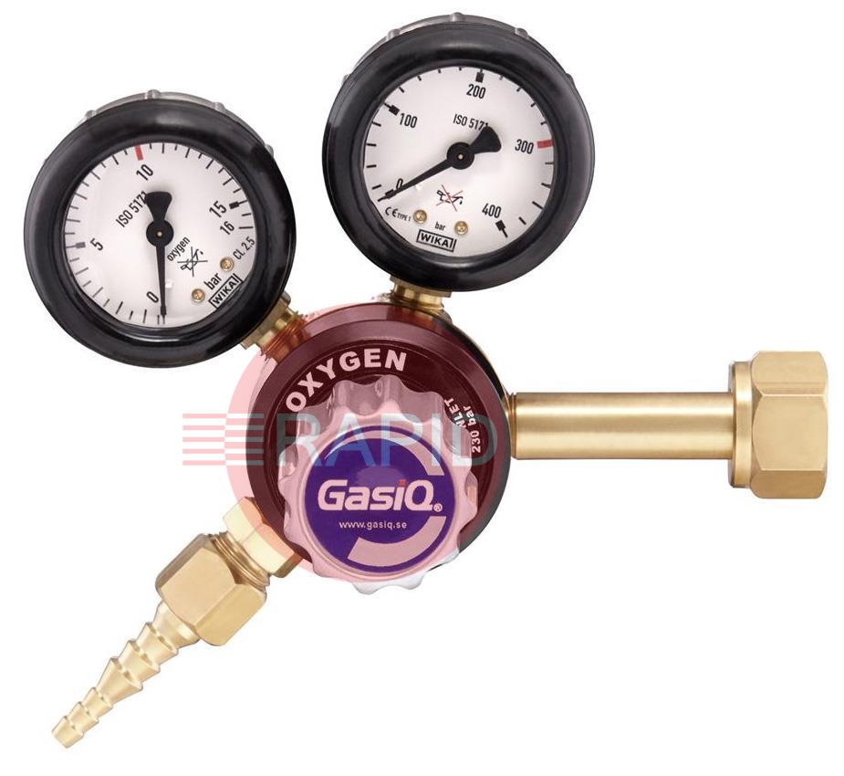 GasiQ Maxex Oxygen Regulator. 10 Bar. W21.8 x 1/14" Cylinder Connection. G3/8" Outlets.