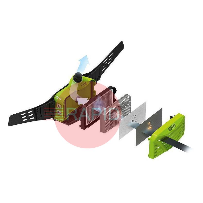 The Helix Quattro fits perfectly with Optrel’s helmet-independent fresh air system Swiss Air. But that's not all. Because now you can also weld, cut, or grind with the Helix Pure Air Quattro as a fresh air helmet in combination with the ATEX-certified e3000X PAPR system.