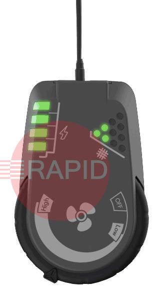 Breathing means living. The Optrel Swiss Air respiratory protection system brings clean breathing air into your environment and lets you breathe as freely as you can otherwise only enjoy outdoors in nature. This unit includes a control panel positioned on the shoulder harness. This includes filter contamination and battery status, air flow control and on/off switch, altitude and temperature compensation.