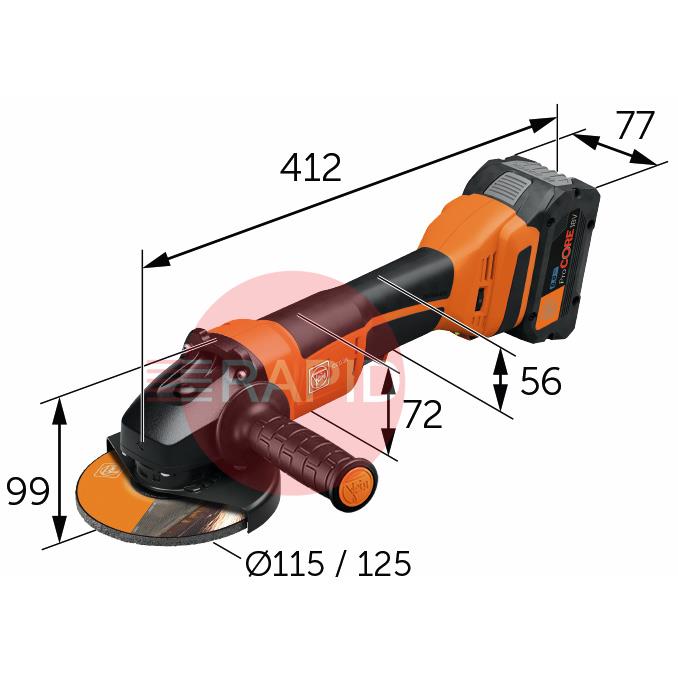 • 71221861000  FEIN CCG 18-125-12 PD AS Cordless 125mm 18V Angle Grinder, with Paddle Switch (Bare Unit)