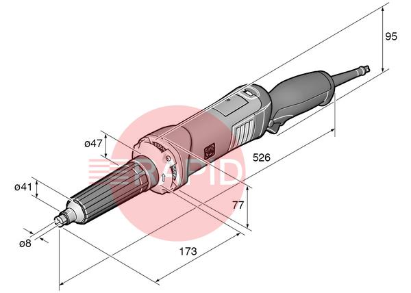 Ergonomic, extremely powerful die grinder with high plunge depth for heavy-duty grinding and deburring in difficult-to-reach spots.