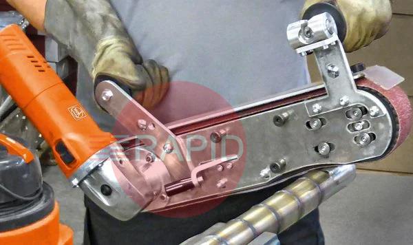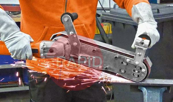 Universal handheld belt grinder for on-site problem-solving, ideal for stainless steel processing.
