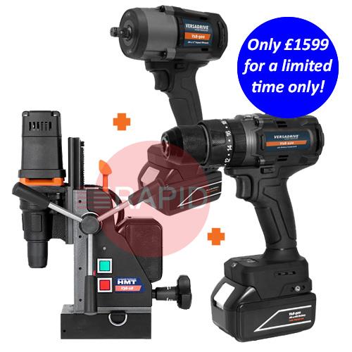 The VersaDrive V18-900 is a powerful and compact brushless impact wrench, rated for metal drilling, threading, and hole enlargement work alongside standard bolt tightening & loosening. Quickly and safely create and modify connection holes in heavy metal components. Optimised for use with the VersaDrive range of cutting tools.