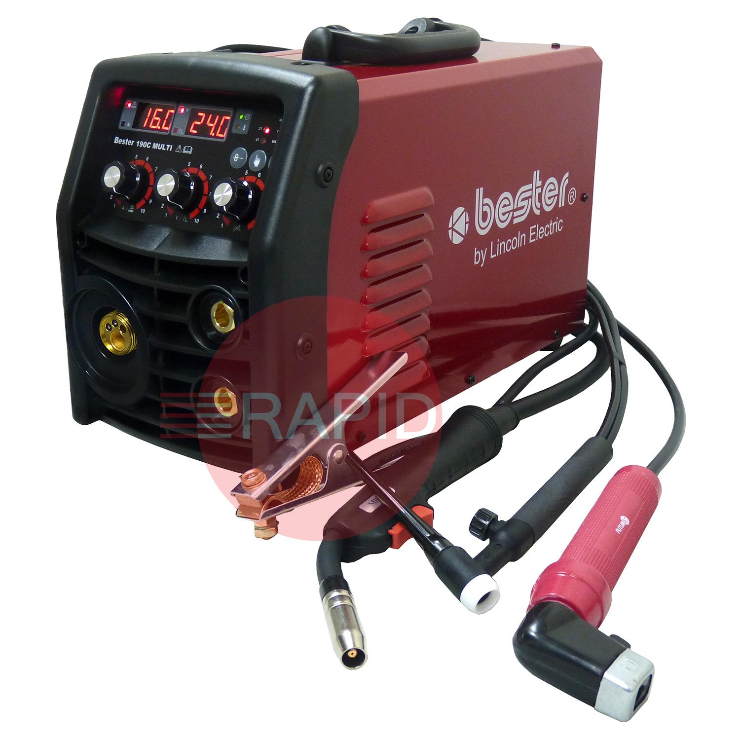 Lincoln Bester 190C Multi Process Inverter Welder Package, with MIG/TIG Torches & MMA Leads - 240v