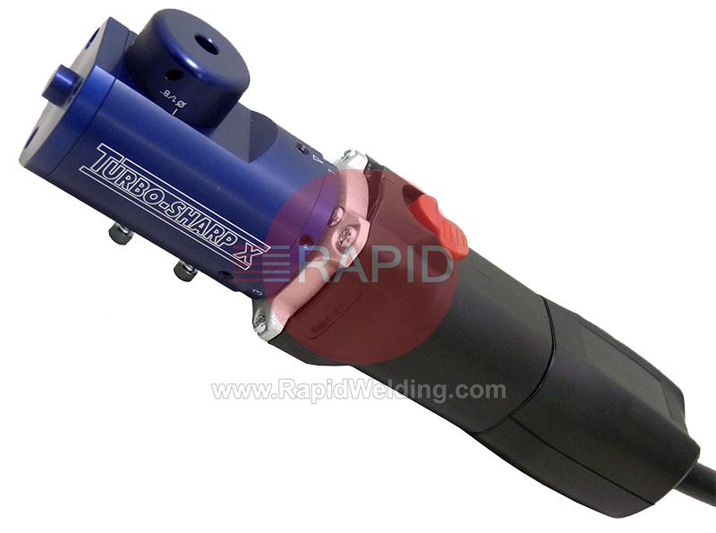 TURBO-SHARP® X is an enclosed electrode grinder, which significantly reduces harmful radioactive (2% Thoriated) grinding dust exposure to both the user and the environment. Properly ground electrodes improve arc starting and stability, reduce tungsten shedding, increase electrode life and enhance welding consistency. The new and improved Turbo-Sharp features an adjustable head, and grinding discs now last 3 times longer.