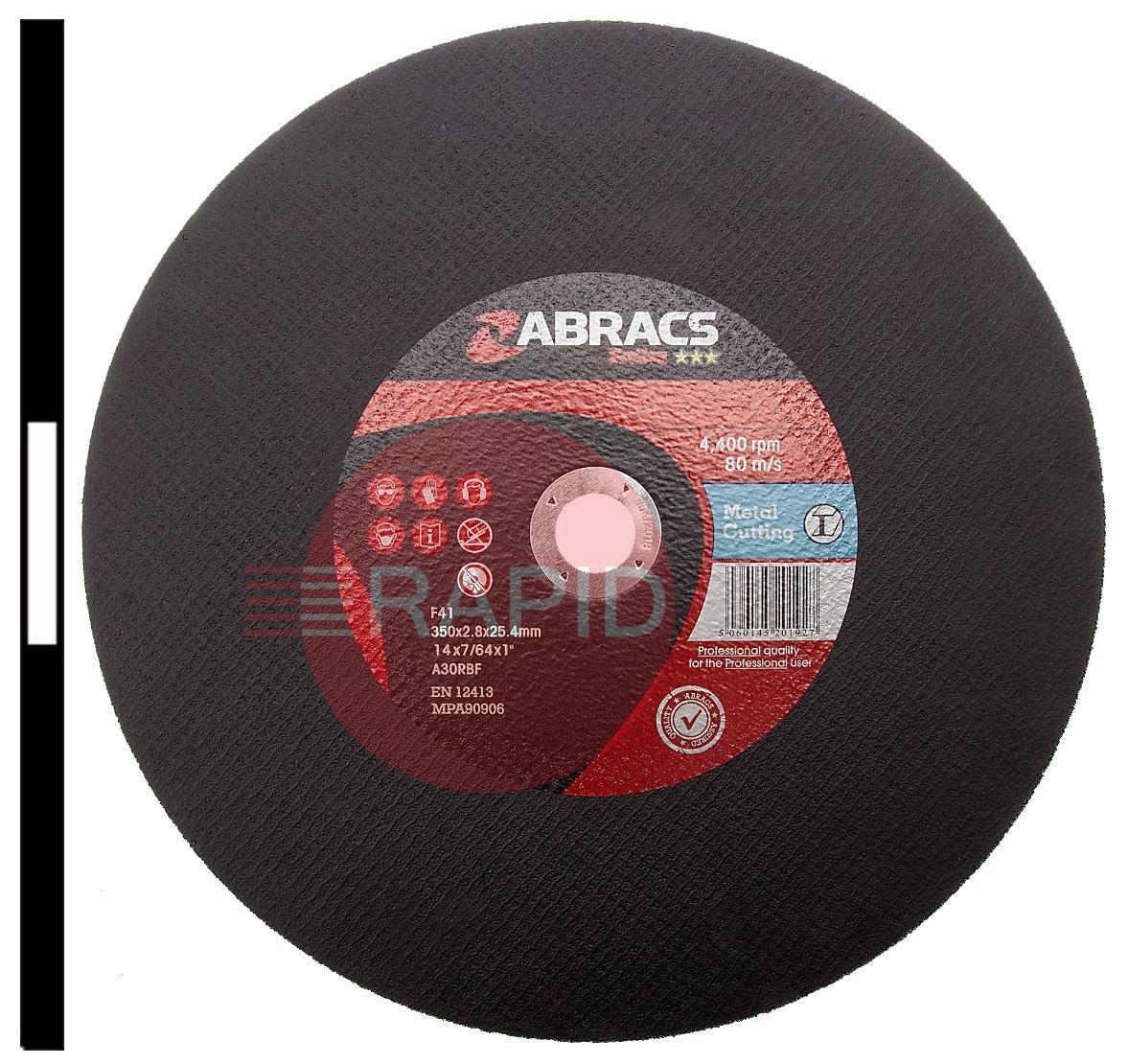Abracs 350mm (14") Slitting Cutting Disc 2.8mm Thick. For Steel & Stainless Steel.