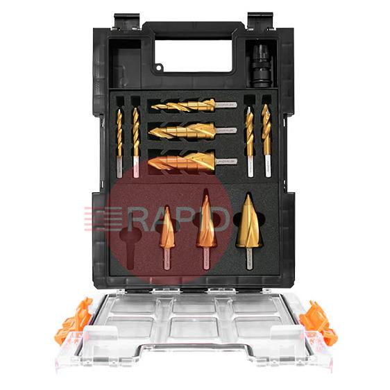 - 3 x VersaDrive TurboTip ImpactaStep Cutters (8-16, 14-22 & 18-26mm)